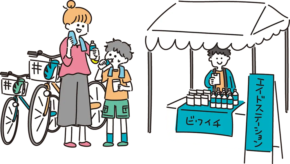 今年は、11月8日(土)、9日(日)(両日ともに9時~16時)の2日間、「エイドステーション」と呼ばれるサイクリストのための特設休憩所を県内4か所に設置します。エイドステーションでは、飲料・補給食の無料配布、キッチンカーの出店、ビワイチ商品の販売等を行います。さらに、キッチンカー等を利用すると一周認定証の引換補助券がもらえます。4枚集めると、「ビワイチの日限定」 びわ湖一周サイクリング認定証が有料で発行できます。