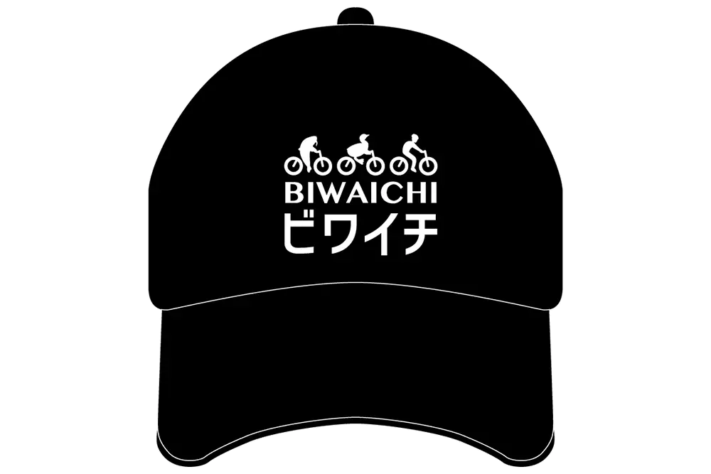 ビワイチサイクリングを楽しむ滋賀の生き物たち(+人)をデザインしたユニークなキャップ。