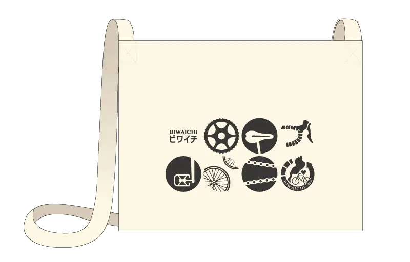 自転車の各部をクローズアップしデザインしたサコッシュ。サイクリングにちょうどよいサイズで、使いやすいシンプルなデザイン。